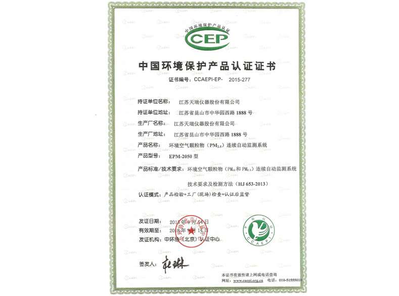 中国环境保护产品认证证书