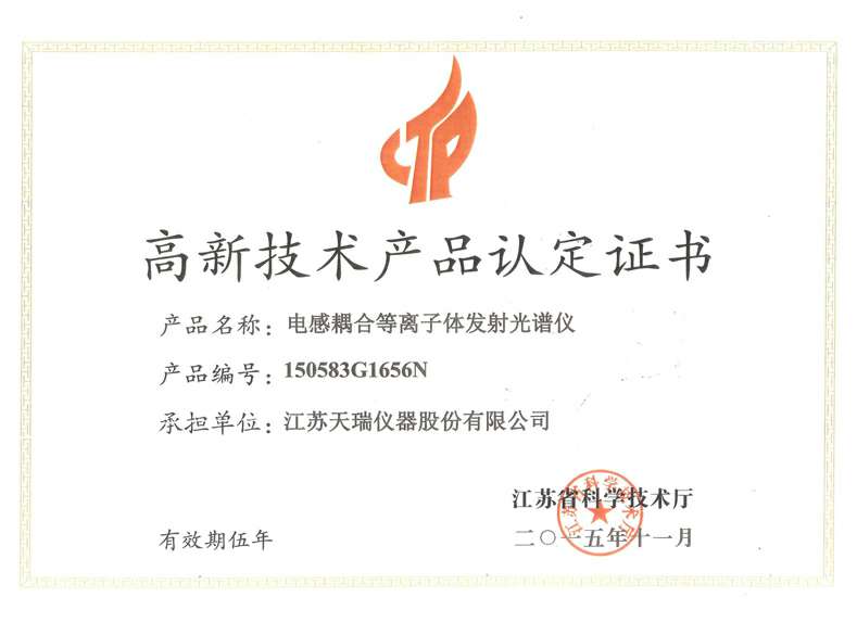 高新技术产品认定证书